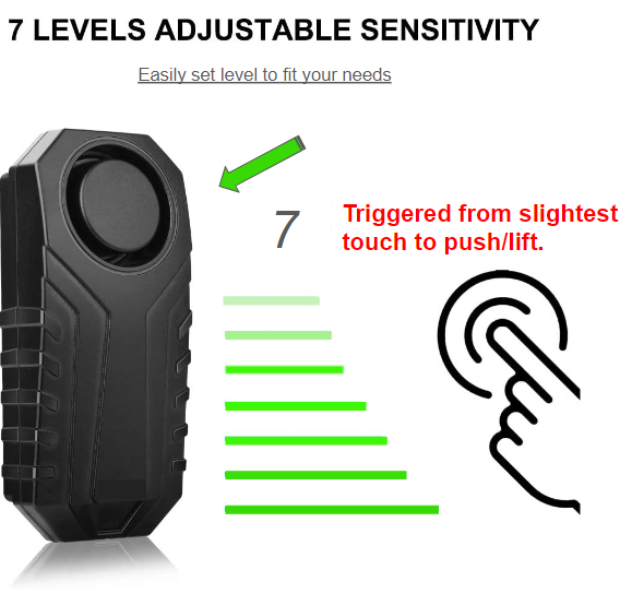 - Advanced Motion & Vibration Detection: Features a highly sensitive sensor with 7 adjustable sensitivity levels, accurately detecting any movement or tampering.