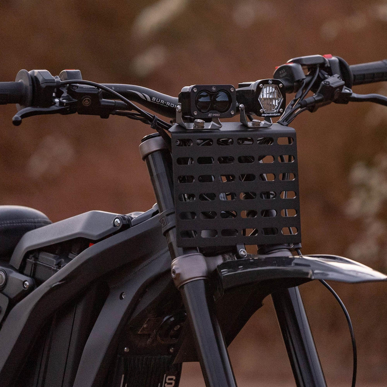 Featuring our advanced LED technology and a larger reflector, the S1 light delivers 2,320 per light of raw lumens that illuminate zones 1, 2 while pushing into zone 3 with the included wide cornering lens. This will allow you to take these powerful yet nimble electric motorcycles further and faster with confidence. Each light can be operated independently from one another thanks to the included harness. What sets this kit apart from any other Sur-Ron kits on the market is the included Baja Designs molle panels for the front and rear of the bike. This is the same panels used by the United States Special Forces and allows a usable storage alternative for hunting equipment, tools, spare parts and anything else that is needed while on a ride. With the included harness, mounting bracket, and necessary hardware, this Sur-Ron S2 IR/S1 White light kit is truly “plug-and-play” allowing you to hit the trails quickly. Backed by our 30-day satisfaction guarantee and Lifetime limited warranty for the ultimate in purchase protection.
