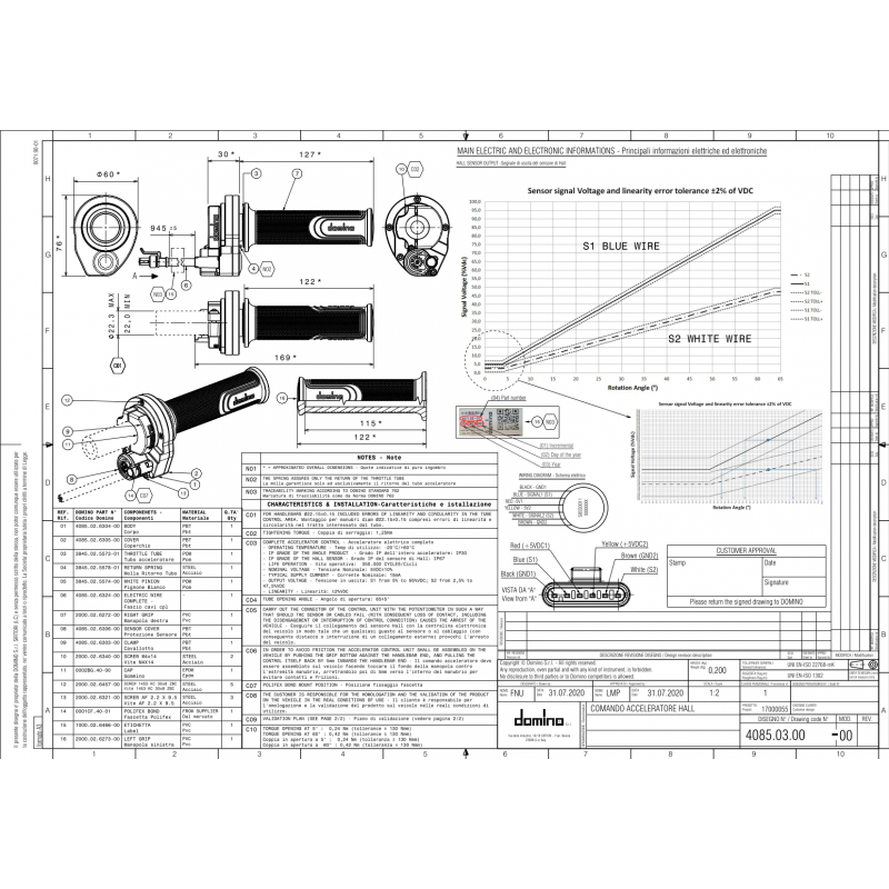 Domino has developed its Potentiometric throttle controls as a reliable product for scooter and small displacement motorcycle applications. The potentiometer’s output is accompanied by that of the “zero throttle” micro-switch to ensure user safety. These throttle controls are designed for stand alone use and for integration within electric or hybrid handlebar controls equipped with the main functions, complete with buttons and switches. Attention! This throttle only work with aftermarket controller such as ASI and KO. This is incompatible with Talaria Sting and Sur-Ron LB-X original controller except for Sur-Ron 2019 and older. This version doesn't have the right connector and will have to be re-wired to match the OEM throttle connector.