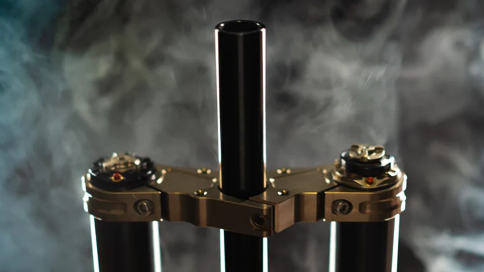 - 36mm Ø hard chromed steel stanchions (heat treated 42CrMo4) with Superfinish surface treatment