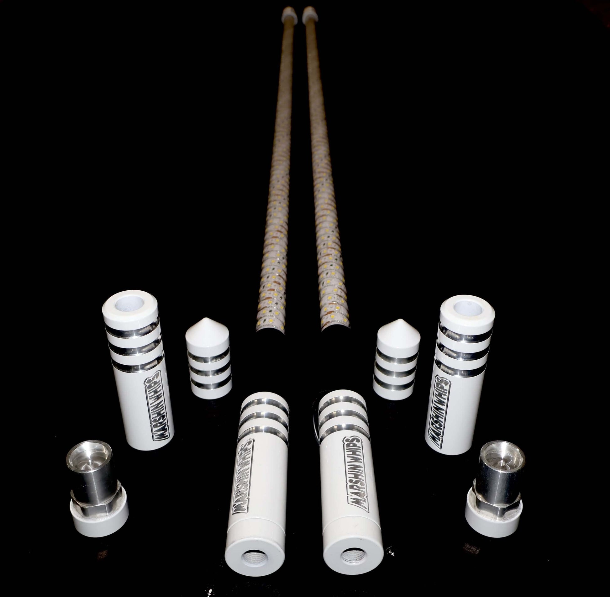 Game Changer Whips Include Powder Coated Magnetic Colored Bases and Matching Caps – White Edition (Base Dust Caps Sold Separately)