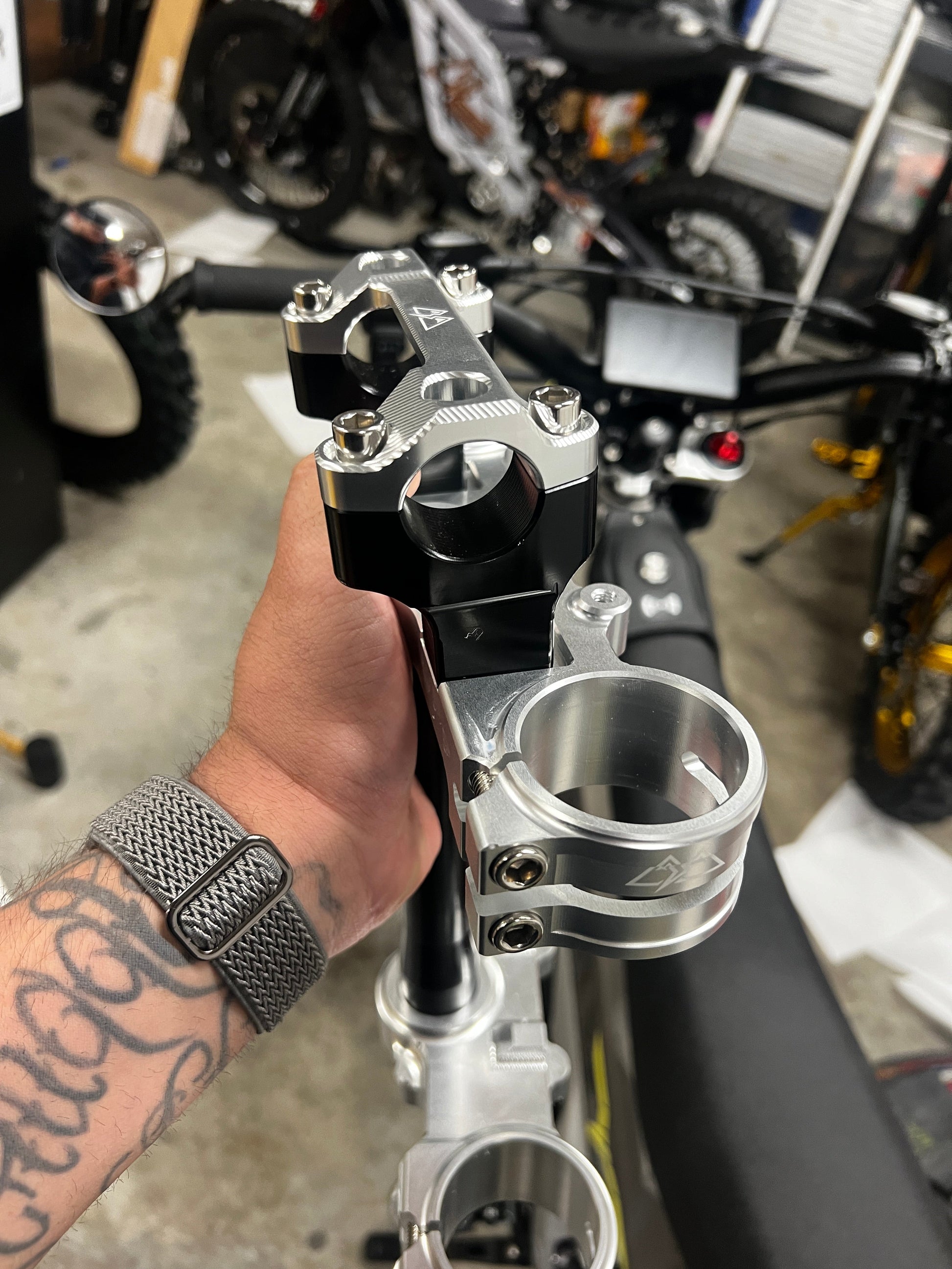 Upgrade your Surron Ultra Bee's front end with these robust triple clamps. Whether you're hitting the trails or tearing up the track, these clamps will help optimize your riding experience! 🏍️🔧👍.