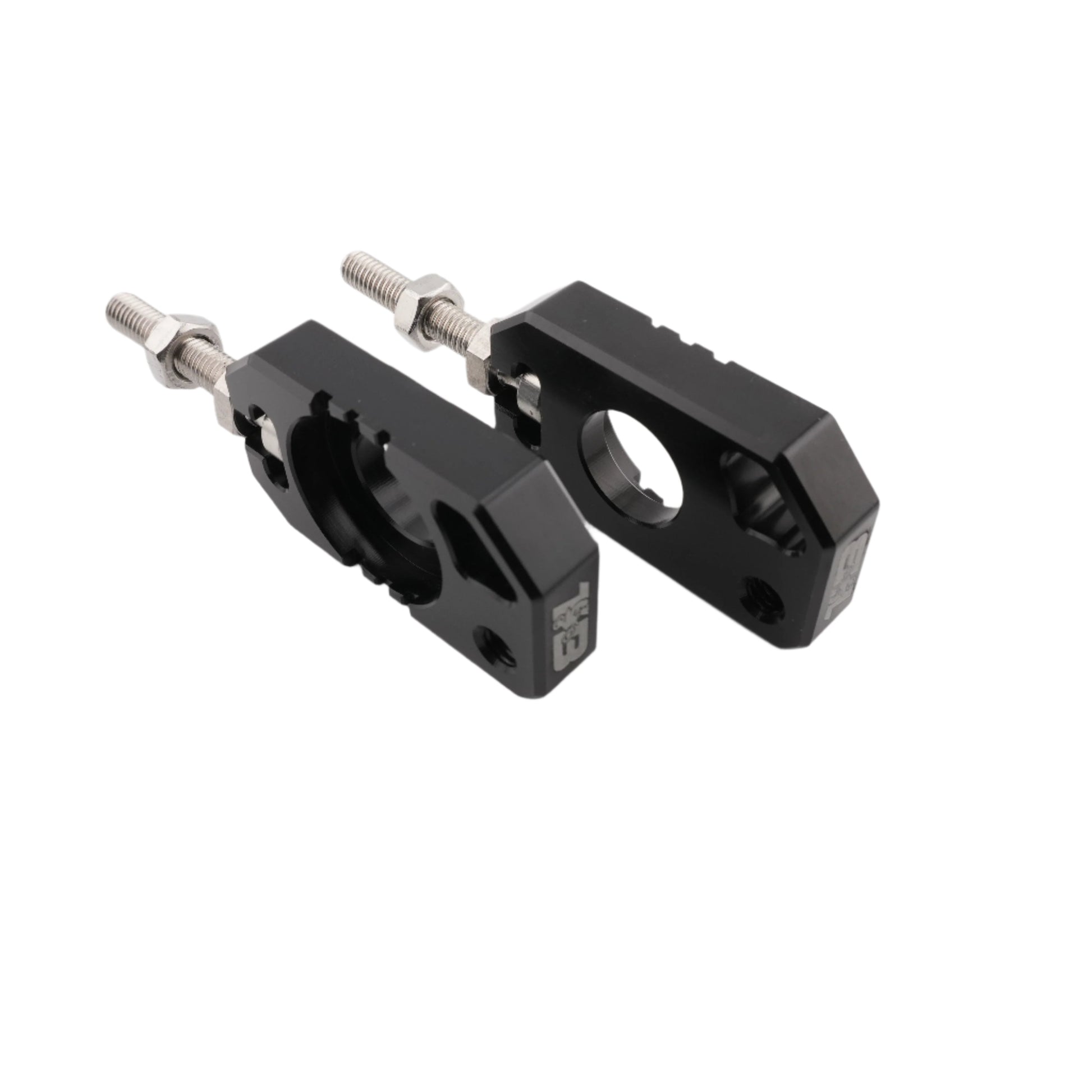 Fine-tune your chain tension and add a custom touch with the TB Axle Blocks for the Talaria Sting MX5. These are CNC-machined from high-strength aluminum and feature precision-cut grooves in the metal for quick, consistent chain alignment—no guessing, no slipping.