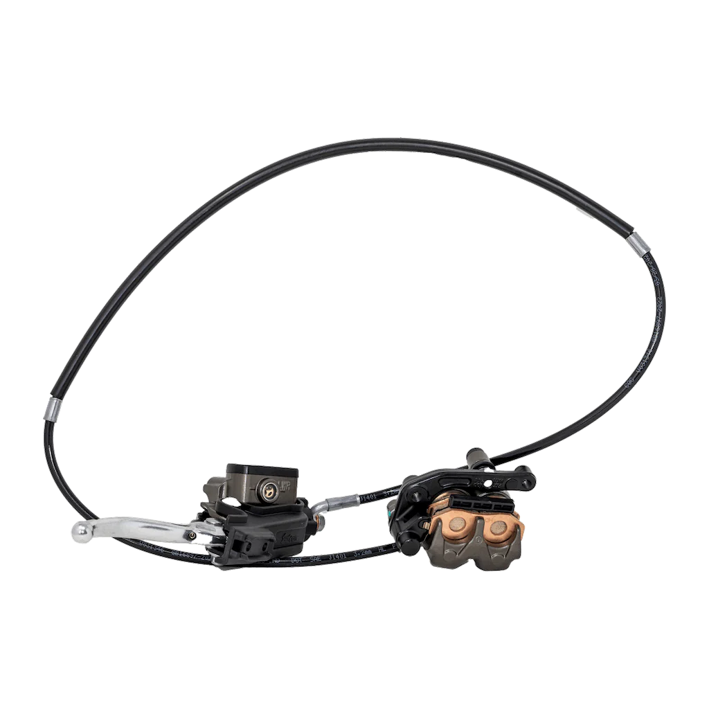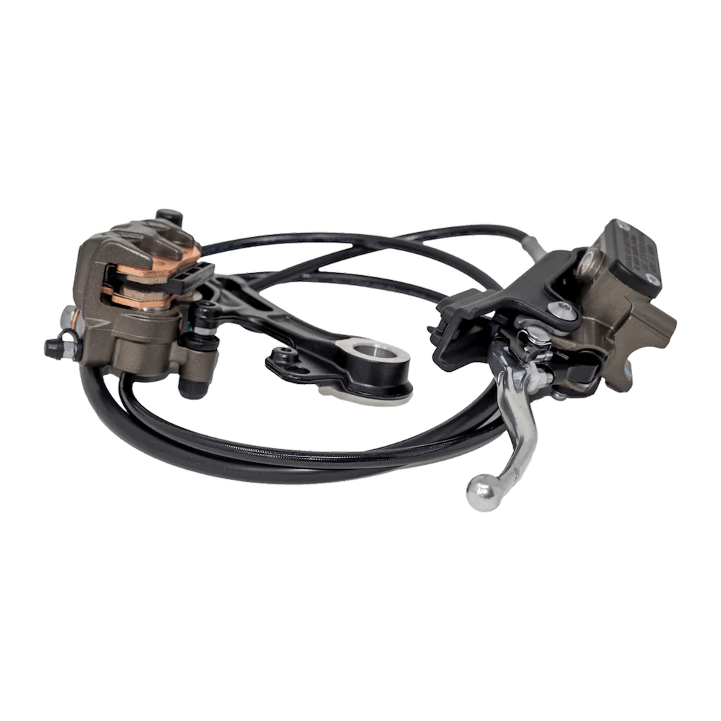 Mountain bike brakes were never designed for the weight and power of these E-motos. Prevent overheating, reduce brake fade, stop consistently on a dime. This full brake kit includes Ultra bee caliper, caliper bracket, lines, master cylinder, Brake lever. Full ready to rip setup. Designed for 230mm rotors, will work with 220mm.
